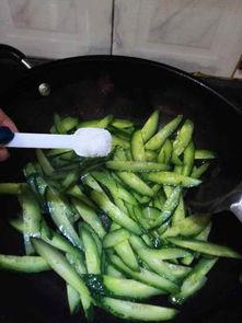 3. 加入黄瓜条,继续翻炒。